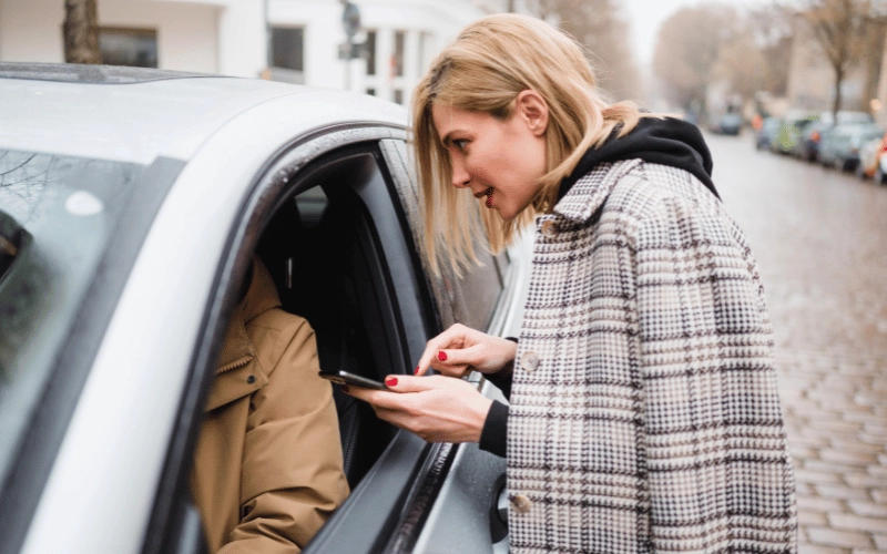 2. Document the scene (photos of vehicles, app on screen, street signs).